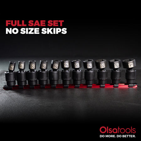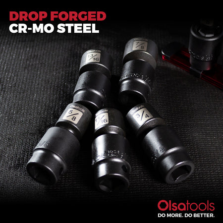 - Pinless universal joint impact sockets with no skipped sizes