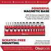 Our magnetic socket organizers have a rubberized magnetic base that won't scratch the surface you place it on. So go ahead and mount it on your toolbox or steel wall without worry.