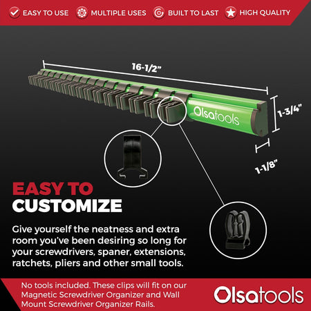 - Create a setup that works best for you with our Extra Clip set for your Olsa Tools Magnetic Screwdriver Holder (MSCWH) and compatible with our Aluminum Socket Organizer. The best part is that it is so easy to install, you'll have it ready in no time.