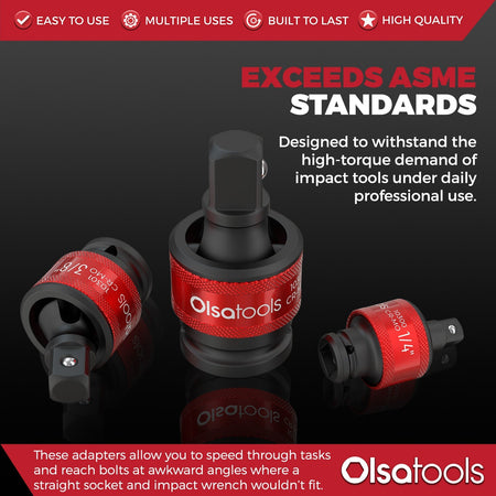 3pc Universal Joint Set, Socket Adapter 1/2", 3/8", and 1/4" drive | 3pc Impact Set