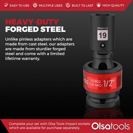 Our Universal Joint Socket Set is available in both Cr-V for regular ratchets and Cr-Mo for impact guns, ensuring compatibility with any tool in your arsenal.