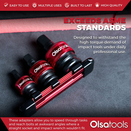 • 3pc impact u-joint socket set in 1/4", 3/8", and 1/2" drive