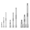 - This wobble socket extension set includes various length extension bars: 1/2-inch drive (3, 5, 10"), 3/8-inch drive (3, 6, 8"), and 1/4-inch drive (2, 4, 6"). The wide variety of sizes means this set has you covered for a wide range of applications in your professional automotive work.